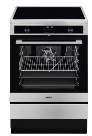 VKI67382RFSteamBake induktionskomfur fra Voss med Pyrolyse selverens, brofunktion og ovnrum på 73 liter.